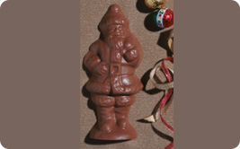 Molded solid milk chocolate in the shape of Santa Claus.